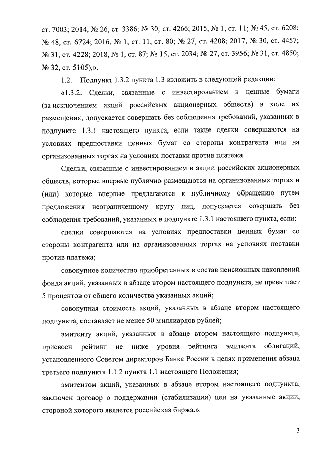 "О ВНЕСЕНИИ ИЗМЕНЕНИЙ В ПУНКТЫ 1.1 И 1.3 ПОЛОЖЕНИЯ БАНКА РОССИИ ОТ 1 МАРТА 2017 Г. N 580-П "ОБ УСТАНОВЛЕНИИ ДОПОЛНИТЕЛЬНЫХ ОГРАНИЧЕНИЙ НА ИНВЕСТИРОВАНИЕ СРЕДСТВ ПЕНСИОННЫХ НАКОПЛЕНИЙ НЕГОСУДАРСТВЕННОГО ПЕНСИОННОГО ФОНДА, ОСУЩЕСТВЛЯЮЩЕГО ОБЯЗАТЕЛЬНОЕ ПЕНСИОННОЕ СТРАХОВАНИЕ, СЛУЧАЕВ, КОГДА УПРАВЛЯЮЩАЯ КОМПАНИЯ, ДЕЙСТВУЯ В КАЧЕСТВЕ ДОВЕРИТЕЛЬНОГО УПРАВЛЯЮЩЕГО СРЕДСТВАМИ ПЕНСИОННЫХ НАКОПЛЕНИЙ, ВПРАВЕ ЗАКЛЮЧАТЬ ДОГОВОРЫ РЕПО, ТРЕБОВАНИЙ, НАПРАВЛЕННЫХ НА ОГРАНИЧЕНИЕ РИСКОВ, ПРИ УСЛОВИИ СОБЛЮДЕНИЯ КОТОРЫХ ТАКАЯ УПРАВЛЯЮЩАЯ КОМПАНИЯ ВПРАВЕ ЗАКЛЮЧАТЬ ДОГОВОРЫ, ЯВЛЯЮЩИЕСЯ ПРОИЗВОДНЫМИ ФИНАНСОВЫМИ ИНСТРУМЕНТАМИ, ДОПОЛНИТЕЛЬНЫХ ТРЕБОВАНИЙ К КРЕДИТНЫМ ОРГАНИЗАЦИЯМ, В КОТОРЫХ РАЗМЕЩАЮТСЯ СРЕДСТВА ПЕНСИОННЫХ НАКОПЛЕНИЙ И НАКОПЛЕНИЯ ДЛЯ ЖИЛИЩНОГО ОБЕСПЕЧЕНИЯ ВОЕННОСЛУЖАЩИХ, А ТАКЖЕ ДОПОЛНИТЕЛЬНОГО ТРЕБОВАНИЯ, КОТОРОЕ УПРАВЛЯЮЩАЯ КОМПАНИЯ ОБЯЗАНА СОБЛЮДАТЬ В ПЕРИОД ДЕЙСТВИЯ ДОГОВОРА ДОВЕРИТЕЛЬНОГО УПРАВЛЕНИЯ СРЕДСТВАМИ ПЕНСИОННЫХ НАКОПЛЕНИЙ ДЛЯ ФИНАНСИРОВАНИЯ НАКОПИТЕЛЬНОЙ ПЕНСИИ"