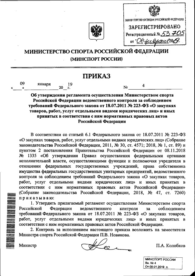 ПРИКАЗ Минспорта РФ от 09.01.2019 N 4
