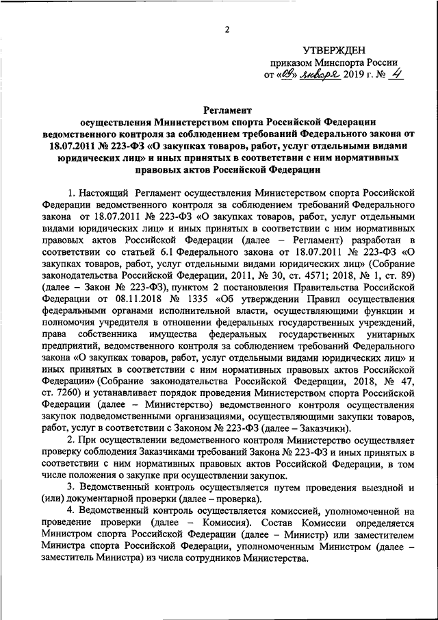 ПРИКАЗ Минспорта РФ от 09.01.2019 N 4