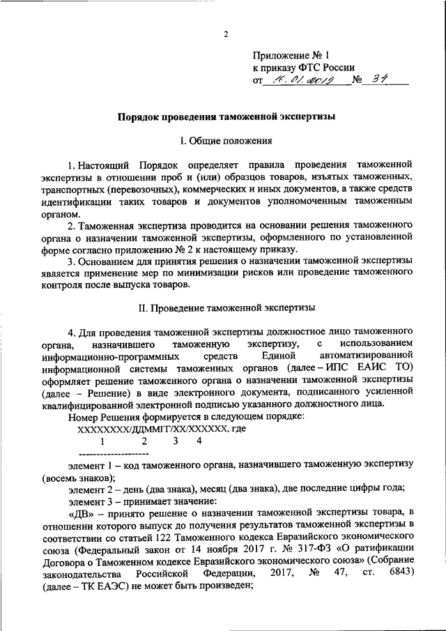 ПРИКАЗ ФТС РФ от 16.01.2019 N 34