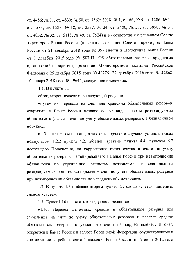 "О ВНЕСЕНИИ ИЗМЕНЕНИЙ В ПОЛОЖЕНИЕ БАНКА РОССИИ ОТ 1 ДЕКАБРЯ 2015 Г. N 507-П "ОБ ОБЯЗАТЕЛЬНЫХ РЕЗЕРВАХ КРЕДИТНЫХ ОРГАНИЗАЦИЙ"