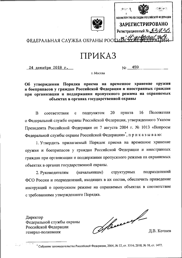 ПРИКАЗ ФСО РФ от 24.12.2018 N 459
