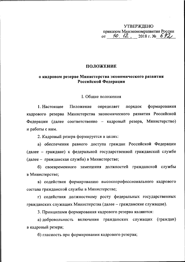 ПРИКАЗ Минэкономразвития РФ от 10.12.2018 N 692