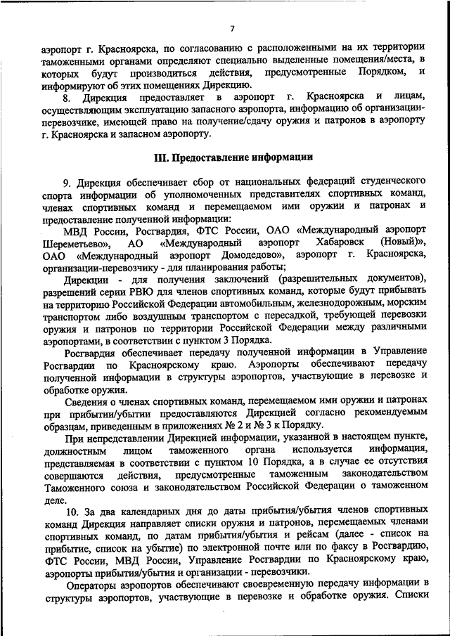 "ОБ УТВЕРЖДЕНИИ ПОРЯДКА ОФОРМЛЕНИЯ В АЭРОПОРТАХ СПОРТИВНОГО ОРУЖИЯ И ПАТРОНОВ К НЕМУ, ПРИНАДЛЕЖАЩИХ АККРЕДИТОВАННЫМ ЛИЦАМ, ДОСТАВКИ СПОРТИВНОГО ОРУЖИЯ И ПАТРОНОВ К НЕМУ ДО МНОГОФУНКЦИОНАЛЬНОГО КОМПЛЕКСА "АКАДЕМИЯ БИАТЛОНА" ПРИ ПРОВЕДЕНИИ XXIX ВСЕМИРНОЙ ЗИМНЕЙ УНИВЕРСИАДЫ 2019 ГОДА В Г. КРАСНОЯРСКЕ"