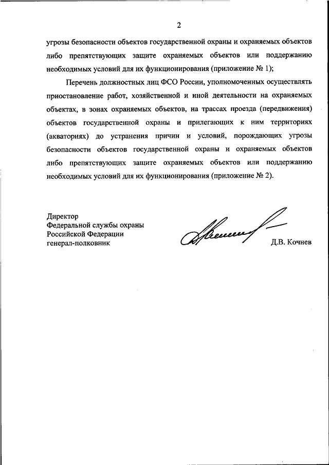 "ОБ УТВЕРЖДЕНИИ ПОРЯДКА ПРИОСТАНОВЛЕНИЯ РАБОТ, ХОЗЯЙСТВЕННОЙ И ИНОЙ ДЕЯТЕЛЬНОСТИ НА ОХРАНЯЕМЫХ ОБЪЕКТАХ, В ЗОНАХ ОХРАНЯЕМЫХ ОБЪЕКТОВ, НА ТРАССАХ ПРОЕЗДА (ПЕРЕДВИЖЕНИЯ) ОБЪЕКТОВ ГОСУДАРСТВЕННОЙ ОХРАНЫ И ПРИЛЕГАЮЩИХ К НИМ ТЕРРИТОРИЯХ (АКВАТОРИЯХ) ДО УСТРАНЕНИЯ ПРИЧИН И УСЛОВИЙ, ПОРОЖДАЮЩИХ УГРОЗЫ БЕЗОПАСНОСТИ ОБЪЕКТОВ ГОСУДАРСТВЕННОЙ ОХРАНЫ И ОХРАНЯЕМЫХ ОБЪЕКТОВ ЛИБО ПРЕПЯТСТВУЮЩИХ ЗАЩИТЕ ОХРАНЯЕМЫХ ОБЪЕКТОВ ИЛИ ПОДДЕРЖАНИЮ НЕОБХОДИМЫХ УСЛОВИЙ ДЛЯ ИХ ФУНКЦИОНИРОВАНИЯ, А ТАКЖЕ ПЕРЕЧНЯ ДОЛЖНОСТНЫХ ЛИЦ ФСО РОССИИ, УПОЛНОМОЧЕННЫХ ОСУЩЕСТВЛЯТЬ ПРИОСТАНОВЛЕНИЕ УКАЗАННОЙ ДЕЯТЕЛЬНОСТИ"