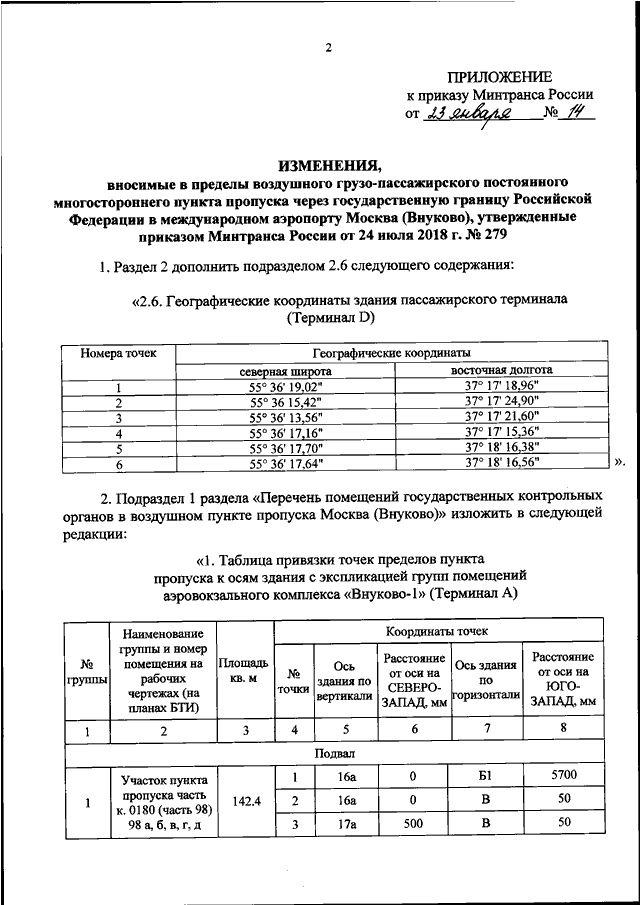 "О ВНЕСЕНИИ ИЗМЕНЕНИЙ В ПРЕДЕЛЫ ВОЗДУШНОГО ГРУЗО - ПАССАЖИРСКОГО ПОСТОЯННОГО МНОГОСТОРОННЕГО ПУНКТА ПРОПУСКА ЧЕРЕЗ ГОСУДАРСТВЕННУЮ ГРАНИЦУ РОССИЙСКОЙ ФЕДЕРАЦИИ В МЕЖДУНАРОДНОМ АЭРОПОРТУ МОСКВА (ВНУКОВО), УТВЕРЖДЕННЫЕ ПРИКАЗОМ МИНТРАНСА РОССИИ ОТ 24 ИЮЛЯ 2018 Г. N 279"