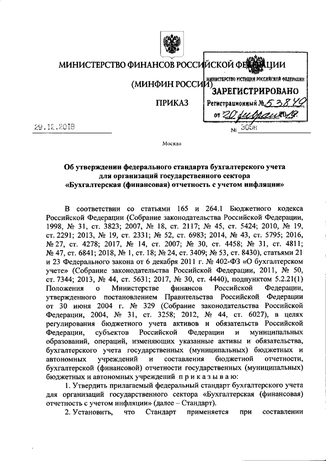 ПРИКАЗ Минфина РФ от 29.12.2018 N 305н