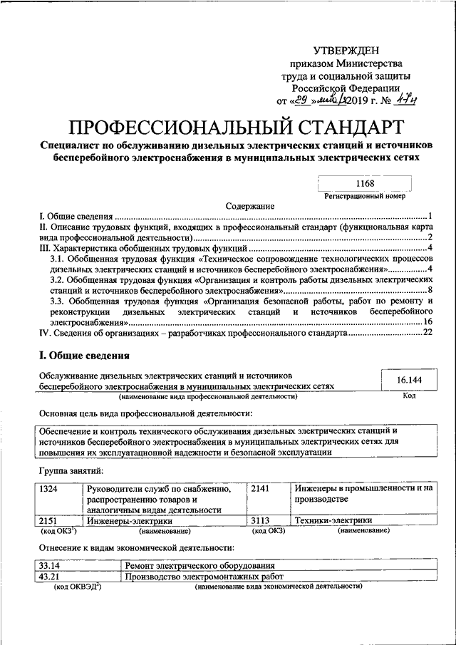 "ОБ УТВЕРЖДЕНИИ ПРОФЕССИОНАЛЬНОГО СТАНДАРТА "СПЕЦИАЛИСТ ПО ОБСЛУЖИВАНИЮ ДИЗЕЛЬНЫХ ЭЛЕКТРИЧЕСКИХ СТАНЦИЙ И ИСТОЧНИКОВ БЕСПЕРЕБОЙНОГО ЭЛЕКТРОСНАБЖЕНИЯ В МУНИЦИПАЛЬНЫХ ЭЛЕКТРИЧЕСКИХ СЕТЯХ"