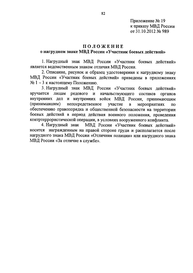 ПРИКАЗ МВД РФ от 31.10.2012 N 989