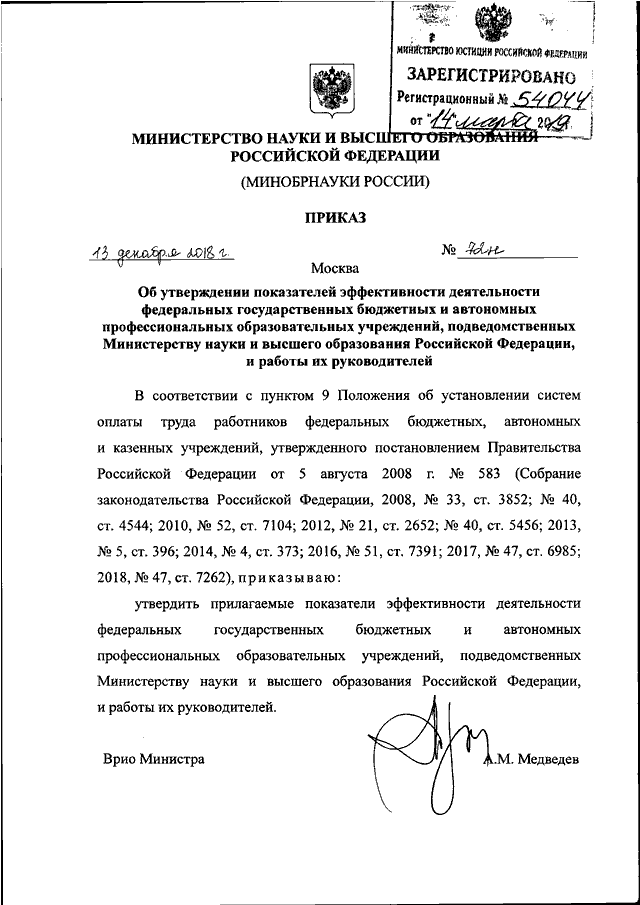ПРИКАЗ Минобрнауки РФ от 13.12.2018 N 72н