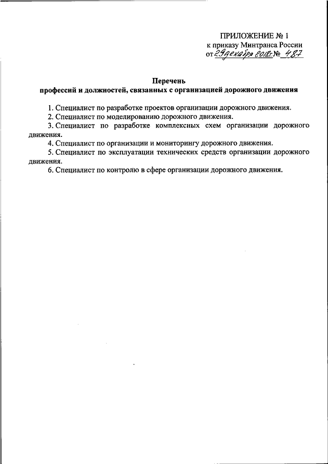 ПРИКАЗ Минтранса РФ от 29.12.2018 N 487