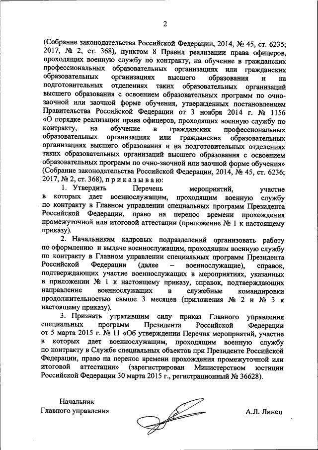 "ОБ УТВЕРЖДЕНИИ ПЕРЕЧНЯ МЕРОПРИЯТИЙ, УЧАСТИЕ В КОТОРЫХ ДАЕТ ВОЕННОСЛУЖАЩИМ, ПРОХОДЯЩИМ ВОЕННУЮ СЛУЖБУ ПО КОНТРАКТУ В ГЛАВНОМ УПРАВЛЕНИИ СПЕЦИАЛЬНЫХ ПРОГРАММ ПРЕЗИДЕНТА РОССИЙСКОЙ ФЕДЕРАЦИИ, ПРАВО НА ПЕРЕНОС ВРЕМЕНИ ПРОХОЖДЕНИЯ ПРОМЕЖУТОЧНОЙ ИЛИ ИТОГОВОЙ АТТЕСТАЦИИ"
