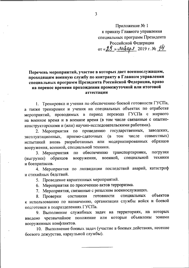 ПРИКАЗ ГУСП от 29.01.2019 N 14