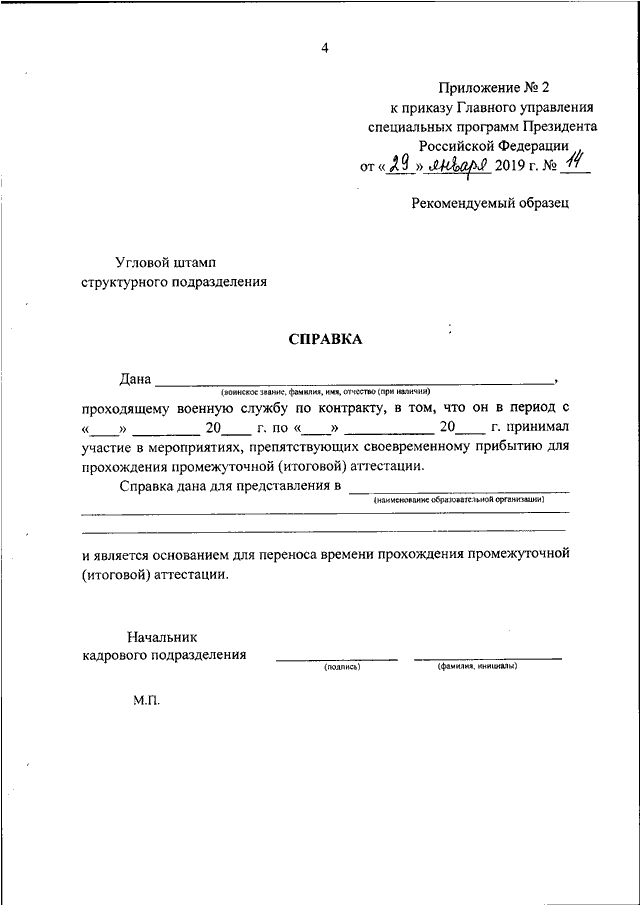 ПРИКАЗ ГУСП от 29.01.2019 N 14