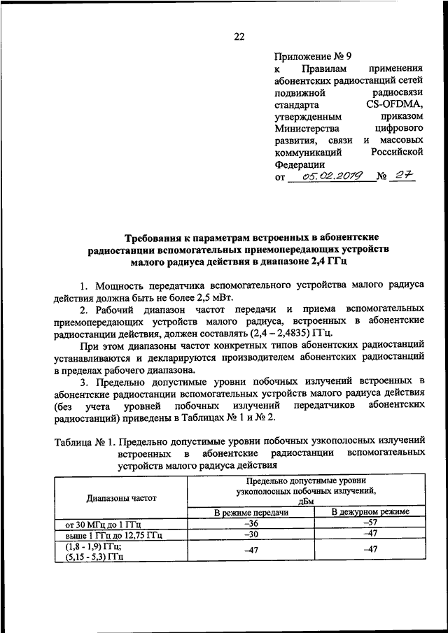 "ОБ УТВЕРЖДЕНИИ ПРАВИЛ ПРИМЕНЕНИЯ АБОНЕНТСКИХ РАДИОСТАНЦИЙ СЕТЕЙ ПОДВИЖНОЙ РАДИОСВЯЗИ СТАНДАРТА CS-OFDMA"