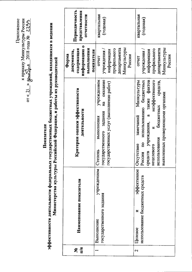 "ОБ УТВЕРЖДЕНИИ ПОКАЗАТЕЛЕЙ ЭФФЕКТИВНОСТИ ДЕЯТЕЛЬНОСТИ ФЕДЕРАЛЬНЫХ ГОСУДАРСТВЕННЫХ БЮДЖЕТНЫХ УЧРЕЖДЕНИЙ, НАХОДЯЩИХСЯ В ВЕДЕНИИ МИНИСТЕРСТВА КУЛЬТУРЫ РОССИЙСКОЙ ФЕДЕРАЦИИ, И РАБОТЫ ИХ РУКОВОДИТЕЛЕЙ"