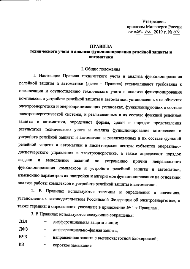 ПРИКАЗ Минэнерго РФ от 08.02.2019 N 80