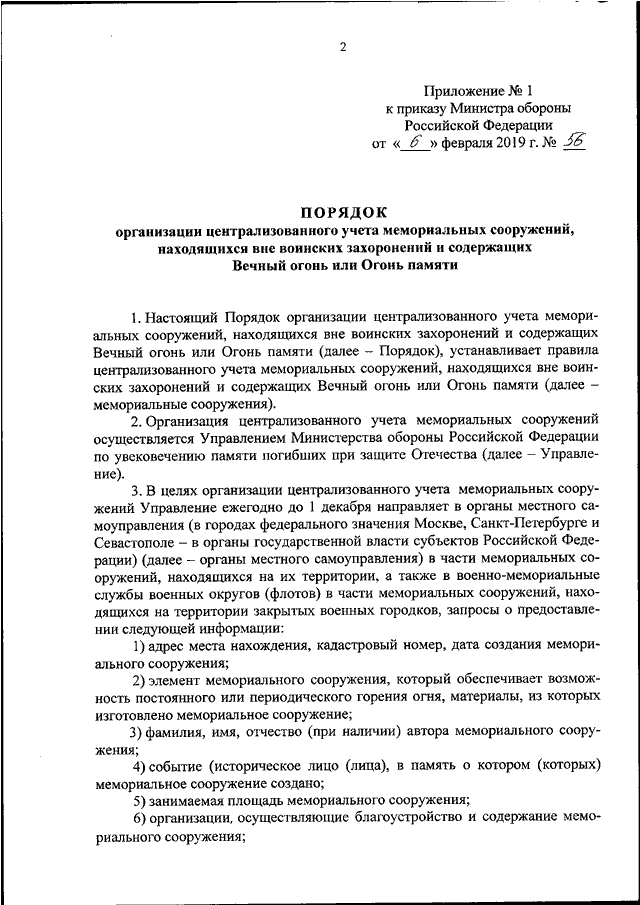 ПРИКАЗ Минобороны РФ от 06.02.2019 N 56