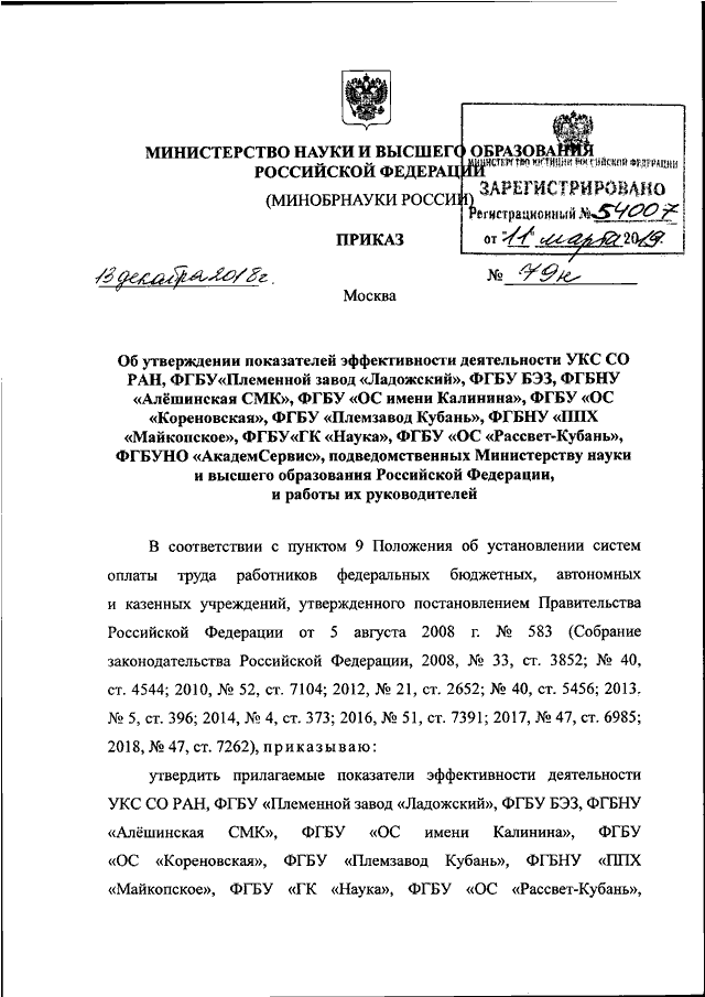 ПРИКАЗ Минобрнауки РФ от 13.12.2018 N 79н