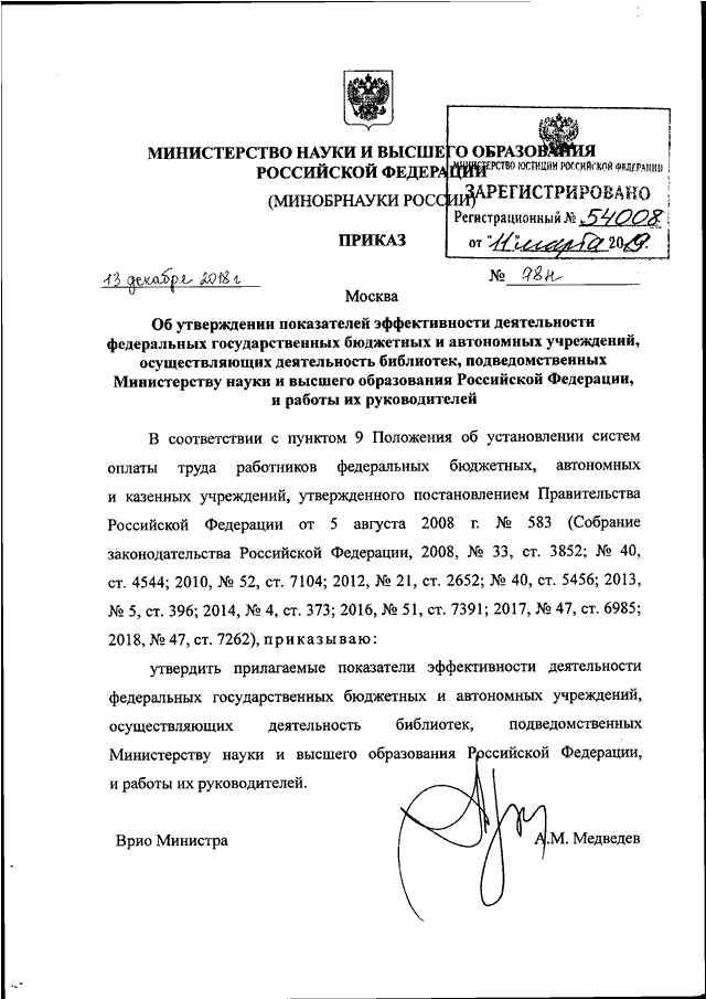 ПРИКАЗ Минобрнауки РФ от 13.12.2018 N 78н