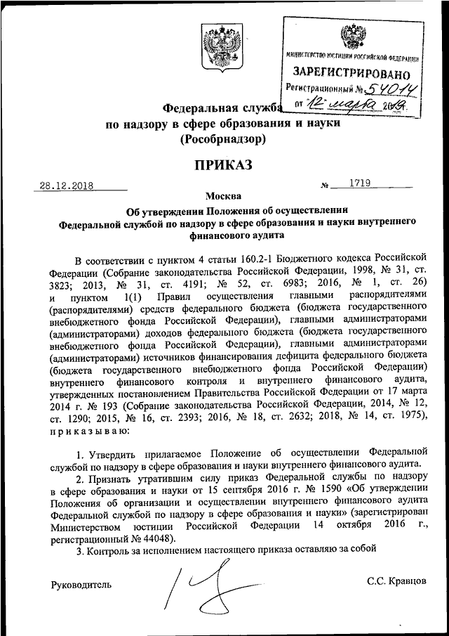 ПРИКАЗ Рособрнадзора от 28.12.2018 N 1719
