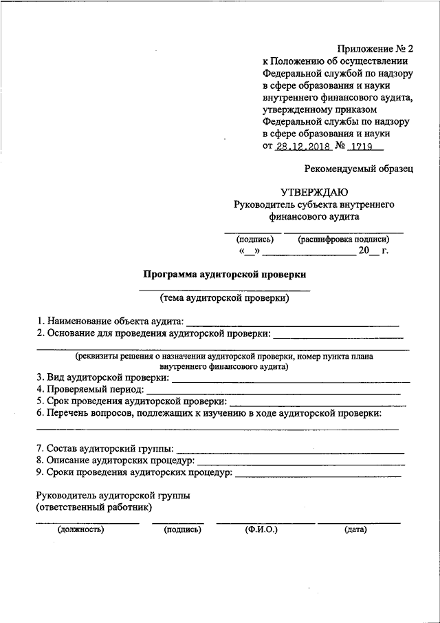 ПРИКАЗ Рособрнадзора от 28.12.2018 N 1719