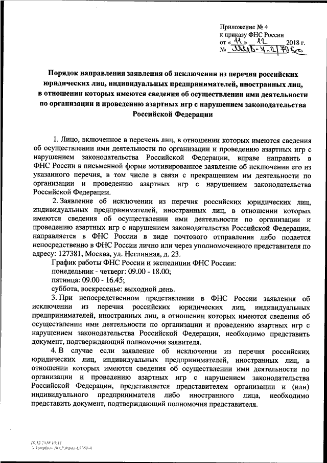 "ОБ УТВЕРЖДЕНИИ ФОРМЫ И ПОРЯДКА НАПРАВЛЕНИЯ ЗАЯВЛЕНИЯ ОБ ИСКЛЮЧЕНИИ ИЗ ПЕРЕЧНЯ РОССИЙСКИХ ЮРИДИЧЕСКИХ ЛИЦ, ИНДИВИДУАЛЬНЫХ ПРЕДПРИНИМАТЕЛЕЙ, ИНОСТРАННЫХ ЛИЦ, В ОТНОШЕНИИ КОТОРЫХ ИМЕЮТСЯ СВЕДЕНИЯ ОБ ОСУЩЕСТВЛЕНИИ ИМИ ДЕЯТЕЛЬНОСТИ ПО ОРГАНИЗАЦИИ И ПРОВЕДЕНИЮ ЛОТЕРЕЙ С НАРУШЕНИЕМ ЗАКОНОДАТЕЛЬСТВА РОССИЙСКОЙ ФЕДЕРАЦИИ; ФОРМЫ И ПОРЯДКА НАПРАВЛЕНИЯ ЗАЯВЛЕНИЯ ОБ ИСКЛЮЧЕНИИ ИЗ ПЕРЕЧНЯ РОССИЙСКИХ ЮРИДИЧЕСКИХ ЛИЦ, ИНДИВИДУАЛЬНЫХ ПРЕДПРИНИМАТЕЛЕЙ, ИНОСТРАННЫХ ЛИЦ, В ОТНОШЕНИИ КОТОРЫХ ИМЕЮТСЯ СВЕДЕНИЯ ОБ ОСУЩЕСТВЛЕНИИ ИМИ ДЕЯТЕЛЬНОСТИ ПО ОРГАНИЗАЦИИ И ПРОВЕДЕНИЮ АЗАРТНЫХ ИГР С НАРУШЕНИЕМ ЗАКОНОДАТЕЛЬСТВА РОССИЙСКОЙ ФЕДЕРАЦИИ"