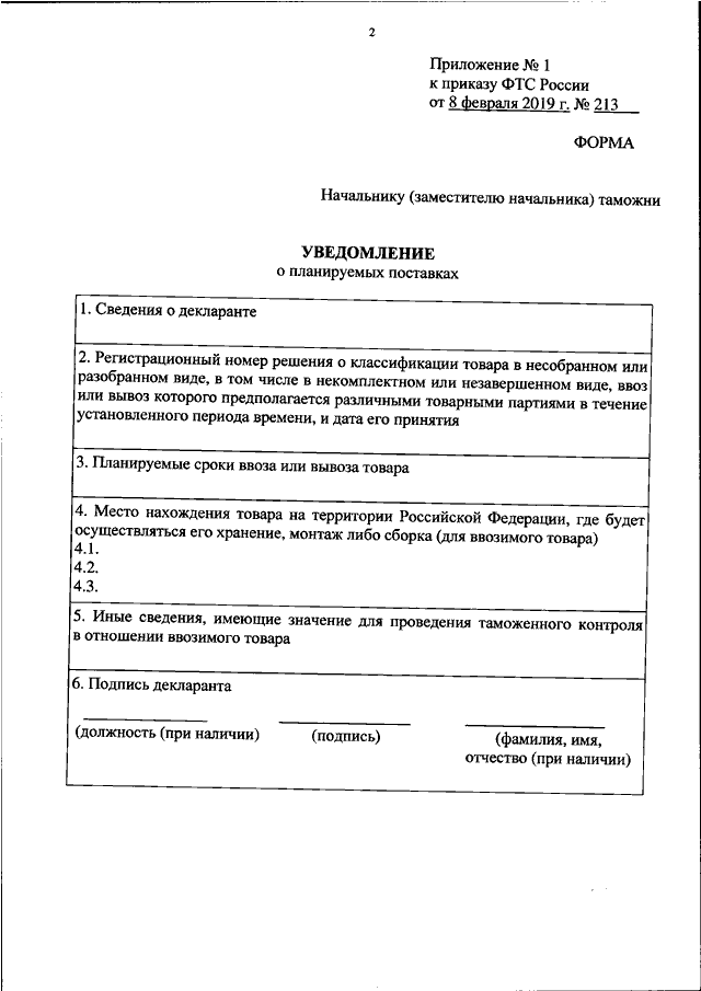 ПРИКАЗ ФТС РФ от 08.02.2019 N 213