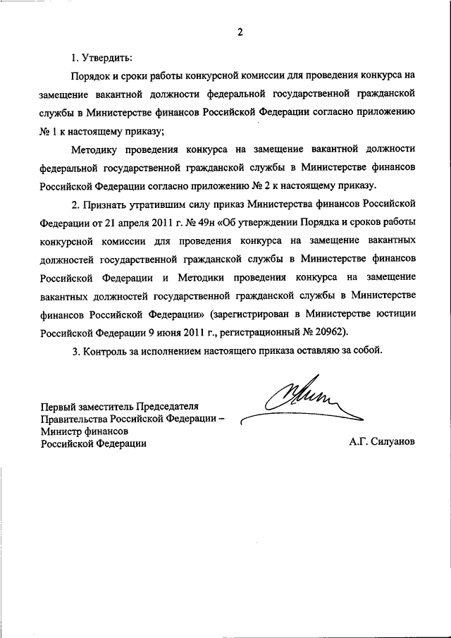 "ОБ УТВЕРЖДЕНИИ ПОРЯДКА И СРОКОВ РАБОТЫ КОНКУРСНОЙ КОМИССИИ ДЛЯ ПРОВЕДЕНИЯ КОНКУРСА НА ЗАМЕЩЕНИЕ ВАКАНТНОЙ ДОЛЖНОСТИ ФЕДЕРАЛЬНОЙ ГОСУДАРСТВЕННОЙ ГРАЖДАНСКОЙ СЛУЖБЫ В МИНИСТЕРСТВЕ ФИНАНСОВ РОССИЙСКОЙ ФЕДЕРАЦИИ И МЕТОДИКИ ПРОВЕДЕНИЯ КОНКУРСА НА ЗАМЕЩЕНИЕ ВАКАНТНОЙ ДОЛЖНОСТИ ФЕДЕРАЛЬНОЙ ГОСУДАРСТВЕННОЙ ГРАЖДАНСКОЙ СЛУЖБЫ В МИНИСТЕРСТВЕ ФИНАНСОВ РОССИЙСКОЙ ФЕДЕРАЦИИ"
