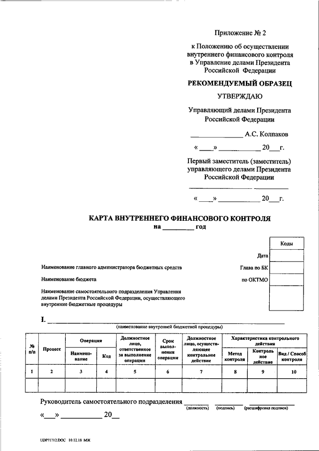 "ОБ УТВЕРЖДЕНИИ ПОЛОЖЕНИЯ ОБ ОСУЩЕСТВЛЕНИИ ВНУТРЕННЕГО ФИНАНСОВОГО КОНТРОЛЯ В УПРАВЛЕНИИ ДЕЛАМИ ПРЕЗИДЕНТА РОССИЙСКОЙ ФЕДЕРАЦИИ"