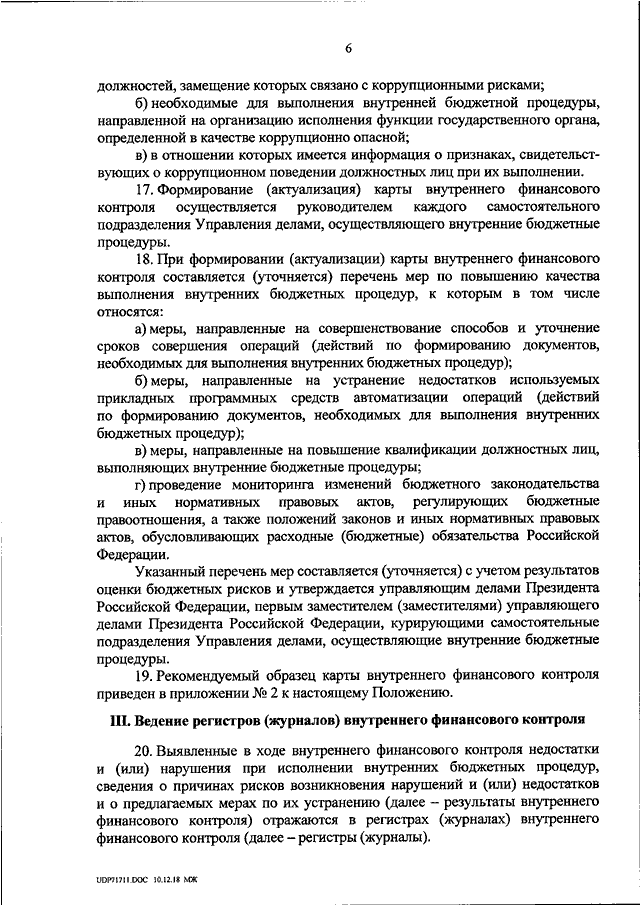 "ОБ УТВЕРЖДЕНИИ ПОЛОЖЕНИЯ ОБ ОСУЩЕСТВЛЕНИИ ВНУТРЕННЕГО ФИНАНСОВОГО КОНТРОЛЯ В УПРАВЛЕНИИ ДЕЛАМИ ПРЕЗИДЕНТА РОССИЙСКОЙ ФЕДЕРАЦИИ"