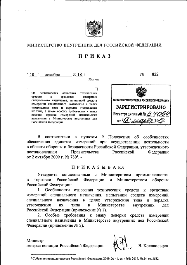 ПРИКАЗ МВД РФ от 10.12.2018 N 822