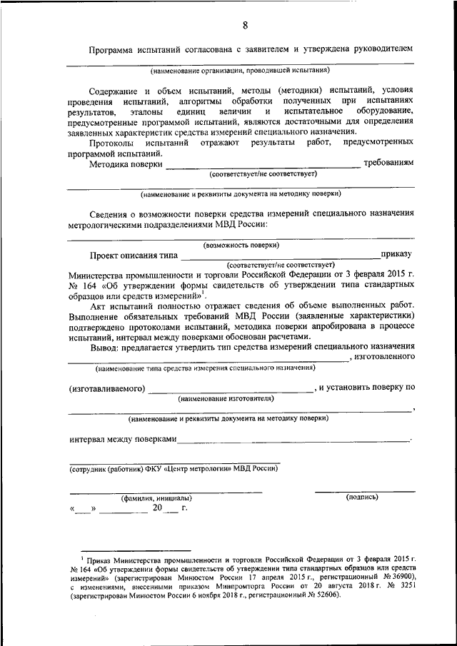"ОБ ОСОБЕННОСТЯХ ОТНЕСЕНИЯ ТЕХНИЧЕСКИХ СРЕДСТВ К СРЕДСТВАМ ИЗМЕРЕНИЙ СПЕЦИАЛЬНОГО НАЗНАЧЕНИЯ, ИСПЫТАНИЙ СРЕДСТВ ИЗМЕРЕНИЙ СПЕЦИАЛЬНОГО НАЗНАЧЕНИЯ В ЦЕЛЯХ УТВЕРЖДЕНИЯ ТИПА И ПОРЯДКА УТВЕРЖДЕНИЯ ИХ ТИПА, А ТАКЖЕ ОСОБЫХ ТРЕБОВАНИЯХ К ЗНАКУ ПОВЕРКИ СРЕДСТВ ИЗМЕРЕНИЙ СПЕЦИАЛЬНОГО НАЗНАЧЕНИЯ В МИНИСТЕРСТВЕ ВНУТРЕННИХ ДЕЛ РОССИЙСКОЙ ФЕДЕРАЦИИ"