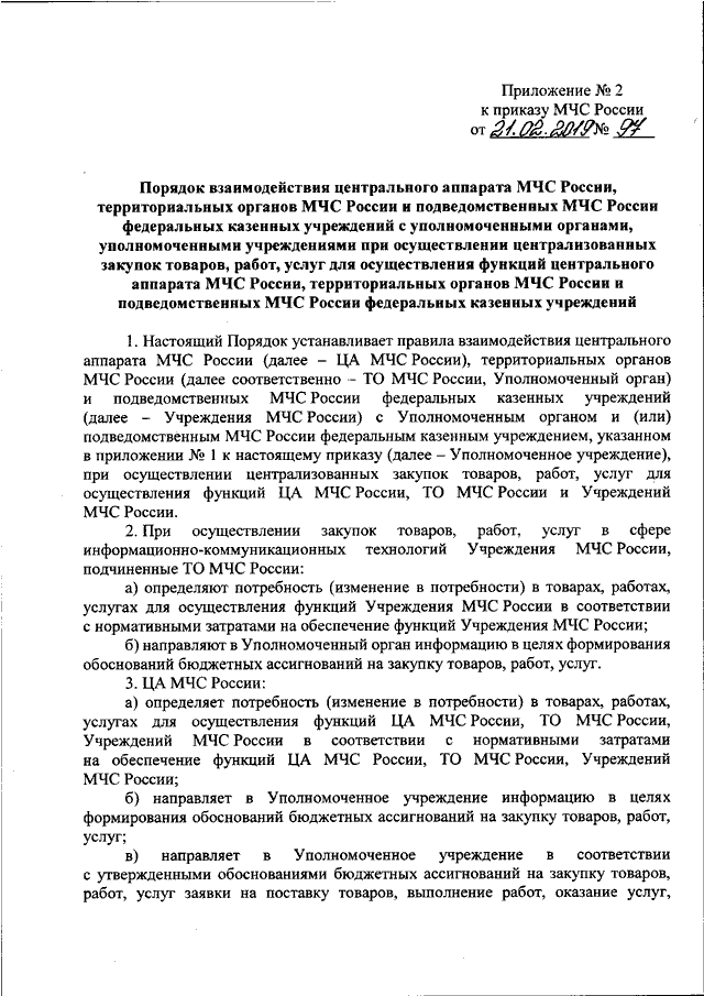 ПРИКАЗ МЧС РФ от 21.02.2019 N 97