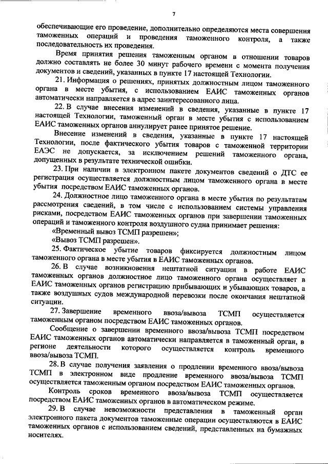 "ОБ УТВЕРЖДЕНИИ ТЕХНОЛОГИИ СОВЕРШЕНИЯ ТАМОЖЕННЫХ ОПЕРАЦИЙ В