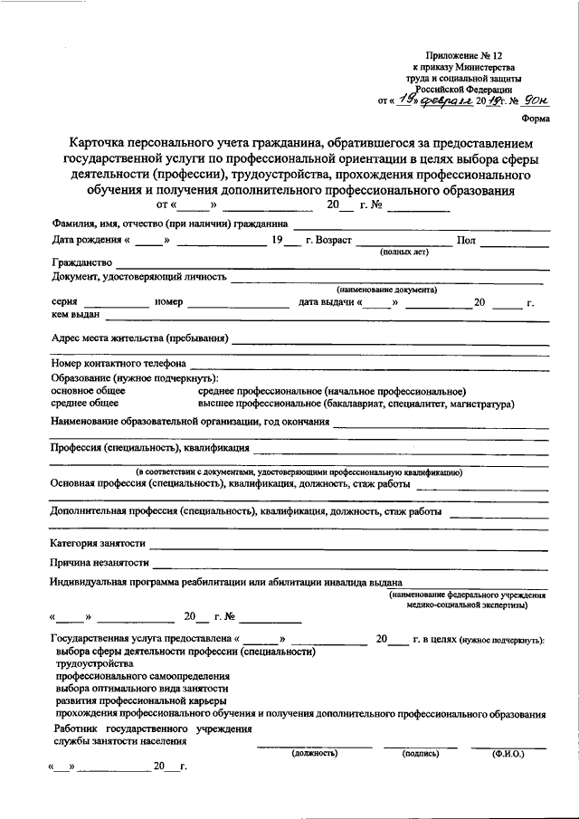 ПРИКАЗ Минтруда РФ от 19.02.2019 N 90н