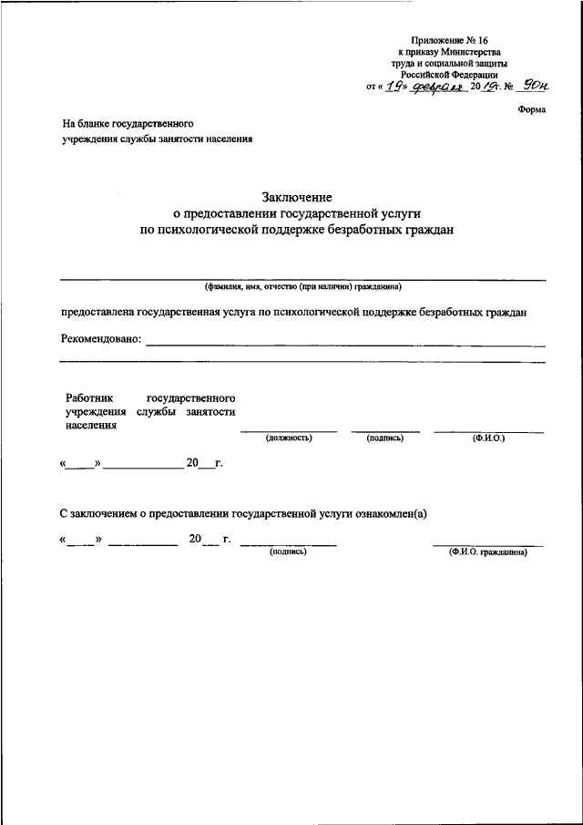 ПРИКАЗ Минтруда РФ от 19.02.2019 N 90н