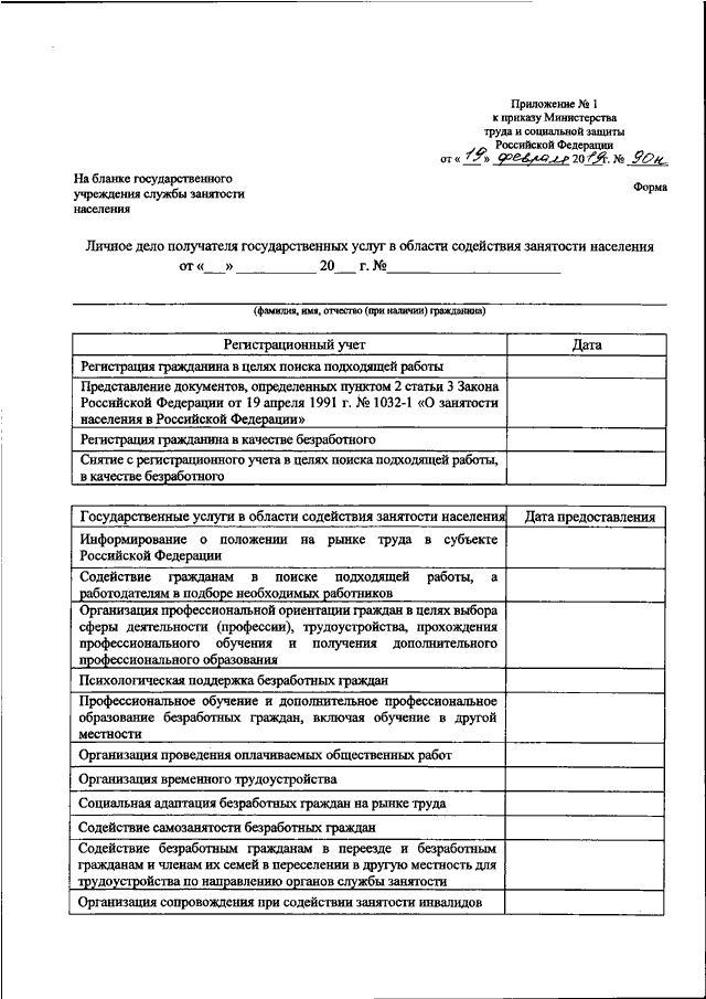 "ОБ УТВЕРЖДЕНИИ ФОРМ БЛАНКОВ ЛИЧНОГО ДЕЛА ПОЛУЧАТЕЛЯ ГОСУДАРСТВЕННЫХ УСЛУГ В ОБЛАСТИ СОДЕЙСТВИЯ ЗАНЯТОСТИ НАСЕЛЕНИЯ"