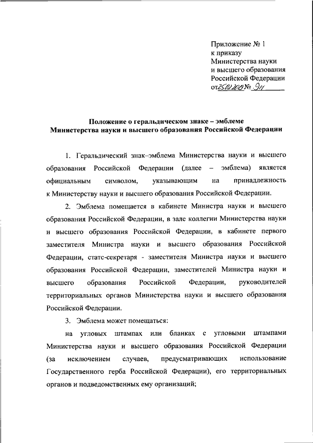 "ОБ УЧРЕЖДЕНИИ ГЕРАЛЬДИЧЕСКОГО ЗНАКА - ЭМБЛЕМЫ МИНИСТЕРСТВА НАУКИ И ВЫСШЕГО ОБРАЗОВАНИЯ РОССИЙСКОЙ ФЕДЕРАЦИИ"