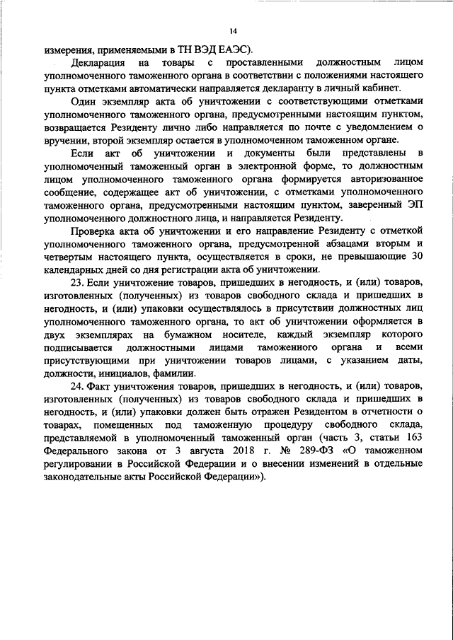 "ОБ УТВЕРЖДЕНИИ ПОРЯДКА УНИЧТОЖЕНИЯ НА ТЕРРИТОРИИ СВОБОДНОГО СКЛАДА ИЛИ ВЫВОЗА С ТЕРРИТОРИИ СВОБОДНОГО СКЛАДА В ЦЕЛЯХ УНИЧТОЖЕНИЯ ПРИШЕДШИХ В НЕГОДНОСТЬ ТОВАРОВ, ПОМЕЩЕННЫХ ПОД ТАМОЖЕННУЮ ПРОЦЕДУРУ СВОБОДНОГО СКЛАДА, КОТОРЫЕ УТРАТИЛИ СВОИ ПОТРЕБИТЕЛЬСКИЕ СВОЙСТВА И СТАЛИ НЕПРИГОДНЫ ДЛЯ ИСПОЛЬЗОВАНИЯ В ТОМ КАЧЕСТВЕ, ДЛЯ КОТОРОГО ОНИ ПРЕДНАЗНАЧЕНЫ, И (ИЛИ) ТОВАРОВ, ИЗГОТОВЛЕННЫХ (ПОЛУЧЕННЫХ) ИЗ ТОВАРОВ, ПОМЕЩЕННЫХ ПОД ТАМОЖЕННУЮ ПРОЦЕДУРУ СВОБОДНОГО СКЛАДА, КОТОРЫЕ УТРАТИЛИ СВОИ ПОТРЕБИТЕЛЬСКИЕ СВОЙСТВА И СТАЛИ НЕПРИГОДНЫ ДЛЯ ИСПОЛЬЗОВАНИЯ В ТОМ КАЧЕСТВЕ, ДЛЯ КОТОРОГО ОНИ ПРЕДНАЗНАЧЕНЫ, А ТАКЖЕ ВВЕЗЕННЫХ ВМЕСТЕ С ТОВАРАМИ НА ТЕРРИТОРИЮ СВОБОДНОГО СКЛАДА УПАКОВКИ И УПАКОВОЧНЫХ МАТЕРИАЛОВ, ПОЛНОСТЬЮ ИЛИ ЧАСТИЧНО УТРАТИВШИХ СВОЕ ПЕРВОНАЧАЛЬНОЕ ПРЕДНАЗНАЧЕНИЕ И СВОИ ПОТРЕБИТЕЛЬСКИЕ СВОЙСТВА"