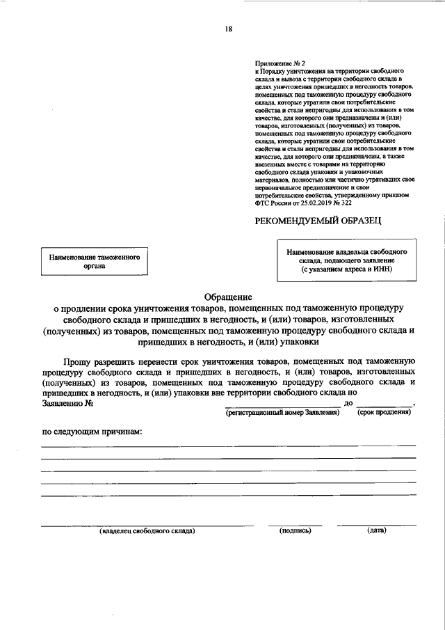 ПРИКАЗ ФТС РФ от 25.02.2019 N 322