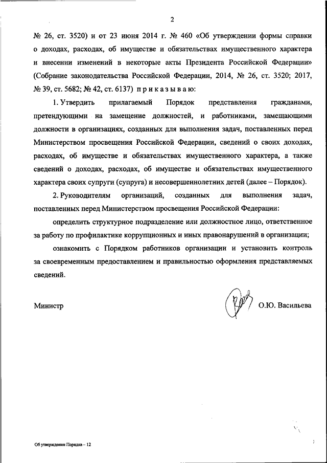 "ОБ УТВЕРЖДЕНИИ ПОРЯДКА ПРЕДСТАВЛЕНИЯ ГРАЖДАНАМИ, ПРЕТЕНДУЮЩИМИ НА ЗАМЕЩЕНИЕ ДОЛЖНОСТЕЙ, И РАБОТНИКАМИ, ЗАМЕЩАЮЩИМИ ДОЛЖНОСТИ В ОРГАНИЗАЦИЯХ, СОЗДАННЫХ ДЛЯ ВЫПОЛНЕНИЯ ЗАДАЧ, ПОСТАВЛЕННЫХ ПЕРЕД МИНИСТЕРСТВОМ ПРОСВЕЩЕНИЯ РОССИЙСКОЙ ФЕДЕРАЦИИ, СВЕДЕНИЙ О СВОИХ ДОХОДАХ, РАСХОДАХ, ОБ ИМУЩЕСТВЕ И ОБЯЗАТЕЛЬСТВАХ ИМУЩЕСТВЕННОГО ХАРАКТЕРА, А ТАКЖЕ СВЕДЕНИЙ О ДОХОДАХ, РАСХОДАХ, ОБ ИМУЩЕСТВЕ И ОБЯЗАТЕЛЬСТВАХ ИМУЩЕСТВЕННОГО ХАРАКТЕРА СВОИХ СУПРУГИ (СУПРУГА) И НЕСОВЕРШЕННОЛЕТНИХ ДЕТЕЙ"