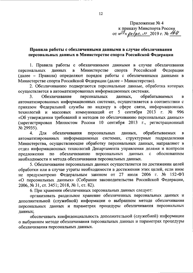 ПРИКАЗ Минспорта РФ от 27.02.2019 N 168