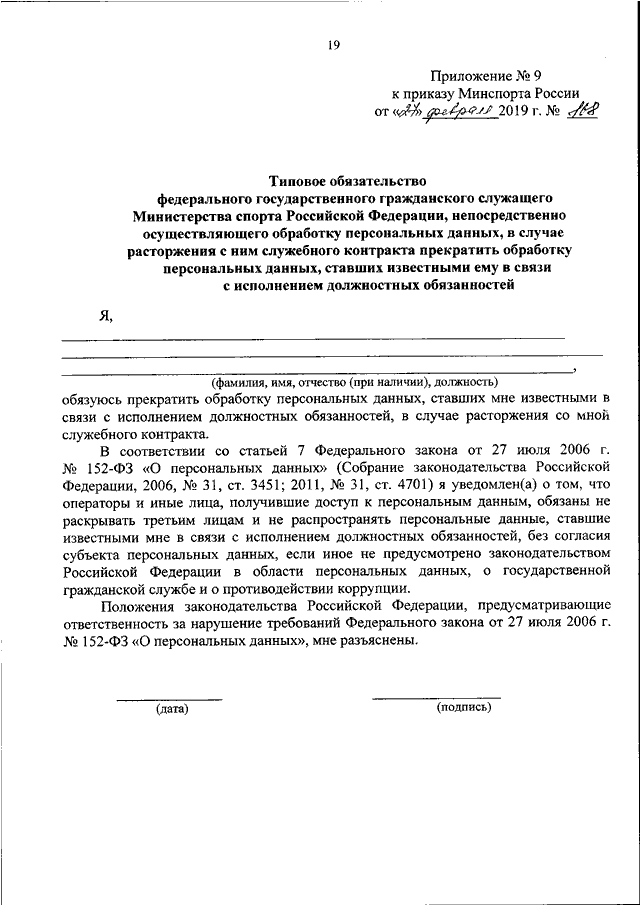 ПРИКАЗ Минспорта РФ от 27.02.2019 N 168