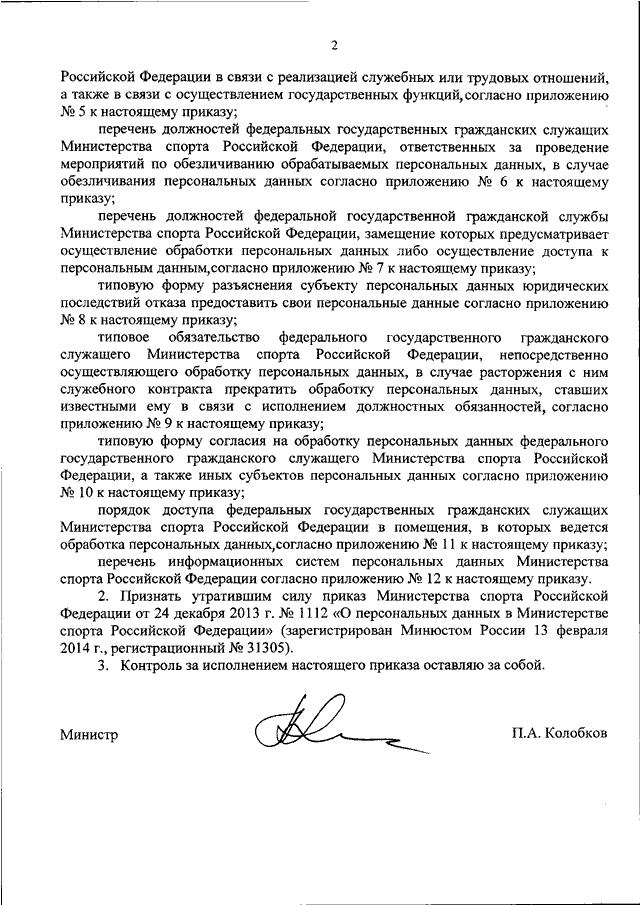 "О ПЕРСОНАЛЬНЫХ ДАННЫХ В МИНИСТЕРСТВЕ СПОРТА РОССИЙСКОЙ ФЕДЕРАЦИИ"