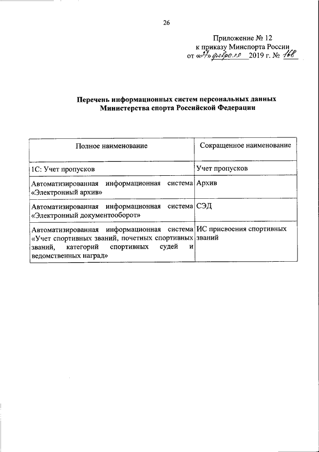 ПРИКАЗ Минспорта РФ от 27.02.2019 N 168