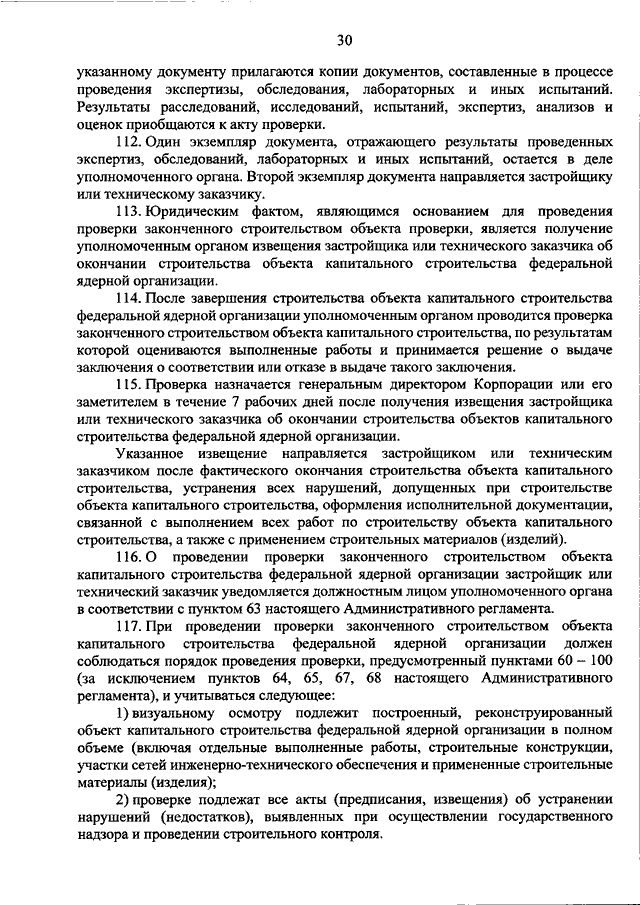 "Росатом" от 25.12.2018 N 1/40-НПА "ОБ УТВЕРЖДЕНИИ АДМИНИСТРАТИВНОГО РЕГЛАМЕНТА ПО ОСУЩЕСТВЛЕНИЮ ГОСУДАРСТВЕННОЙ КОРПОРАЦИЕЙ ПО АТОМНОЙ ЭНЕРГИИ "РОСАТОМ" ФЕДЕРАЛЬНОГО ГОСУДАРСТВЕННОГО СТРОИТЕЛЬНОГО НАДЗОРА ПРИ СТРОИТЕЛЬСТВЕ, РЕКОНСТРУКЦИИ ОБЪЕКТОВ ФЕДЕРАЛЬНЫХ ЯДЕРНЫХ ОРГАНИЗАЦИЙ"