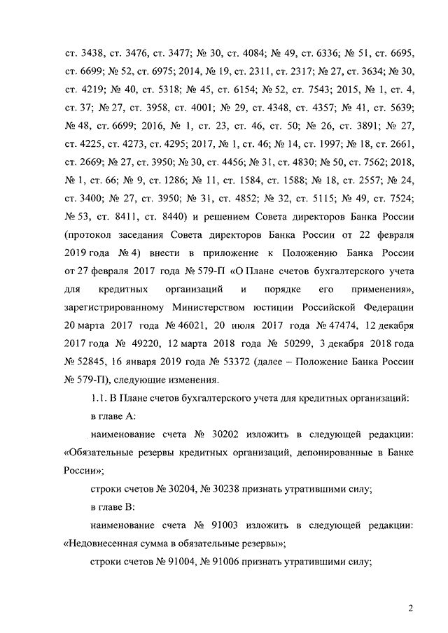 "О ВНЕСЕНИИ ИЗМЕНЕНИЙ В ПОЛОЖЕНИЕ БАНКА РОССИИ ОТ 27 ФЕВРАЛЯ 2017 Г. N 579-П "О ПЛАНЕ СЧЕТОВ БУХГАЛТЕРСКОГО УЧЕТА ДЛЯ КРЕДИТНЫХ ОРГАНИЗАЦИЙ И ПОРЯДКЕ ЕГО ПРИМЕНЕНИЯ"