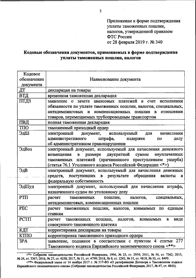 ПРИКАЗ ФТС РФ от 28.02.2019 N 340