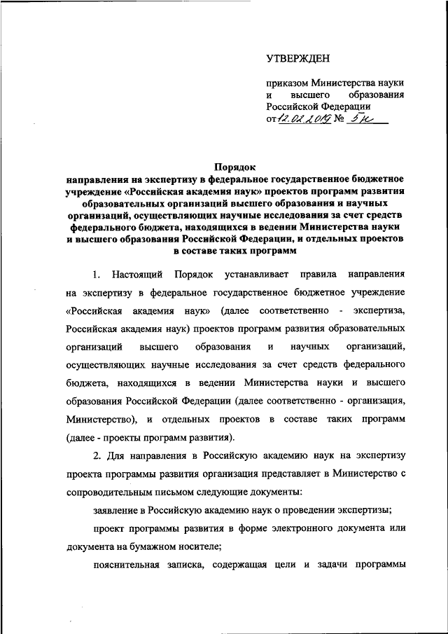 ПРИКАЗ Минобрнауки РФ от 12.02.2019 N 5н